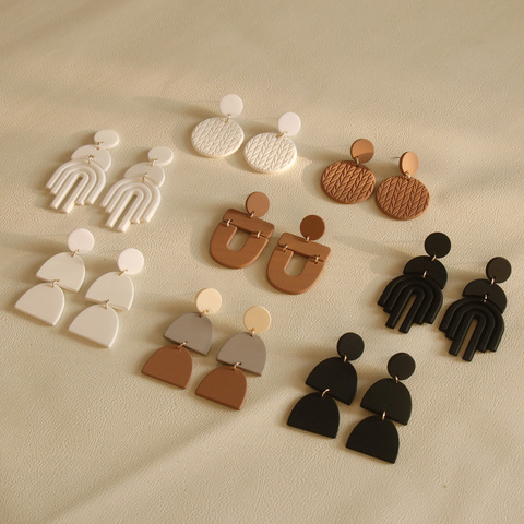 Boho Lightweight Irregular Handmade Polymer Clay Texture Earring Geometric Multicolor Acrylic Long Drop Dangle Earrings