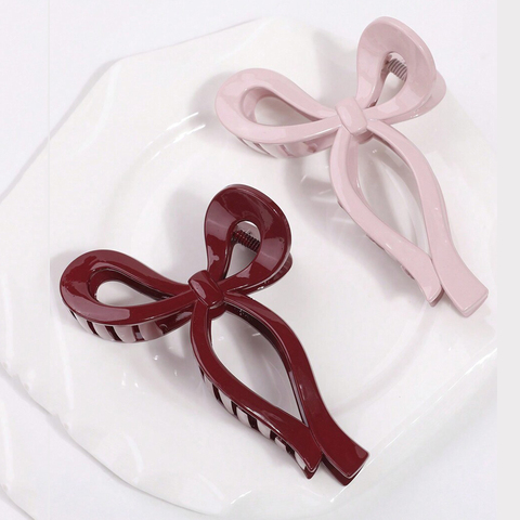 Trendy Elegant Large Bow Clip Textured Red Pink Ribbon Bows Hair Claw Clips for Women